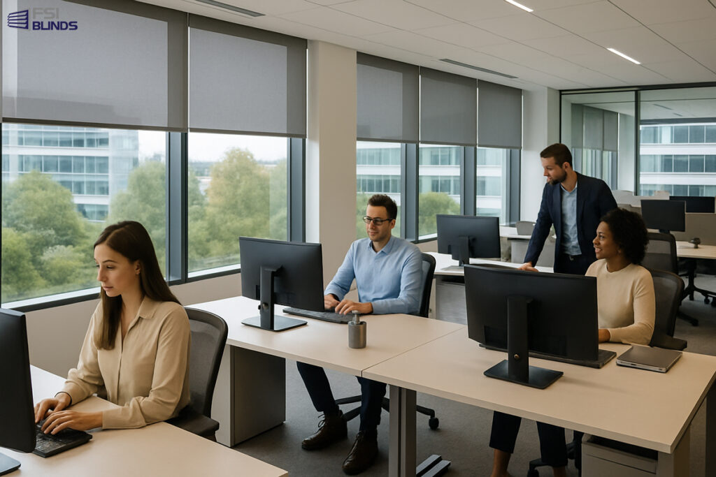 Industry best practices emphasize the importance of workplace ergonomics and lighting in overall productivity. According to the American Society of Interior Designers, lighting control significantly impacts worker well-being and output—aligning directly with FSI Blinds’ solutions for office blinds for productivity.